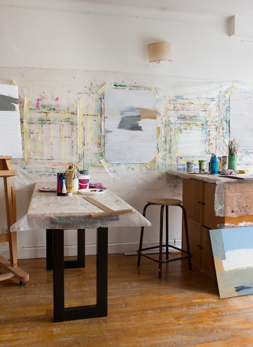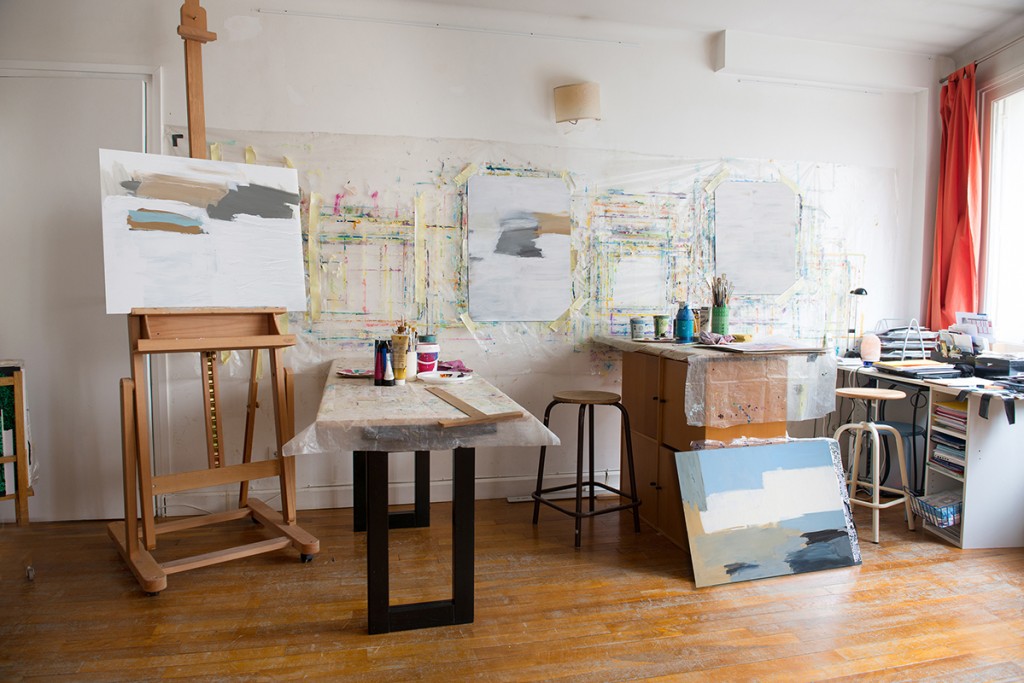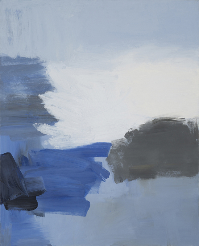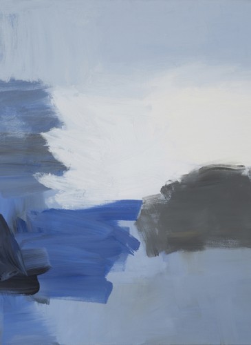 Mélange des pigments, consistance de la matière et gestes vigoureux concourent dans une composition très épurée à nous plonger dans un paysage hivernal. Malgré le mouvement, prime la sérénité et le silence.