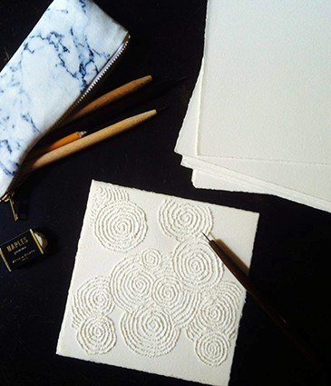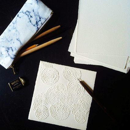 De l’infiniment grand à l’infiniment petit, la carte du monde devient motif oscillant entre abstrait et figuratif, paysages fantasmagoriques et cartographies utopiques. J’imagine un nouveau monde. Je m’approprie les lieux. J’en dessine les frontières. Je cherche à contrôler de manière métaphorique et graphique cet univers.