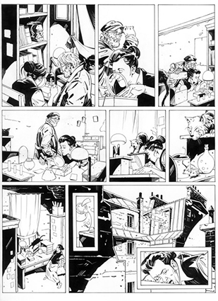 Hypnos, d’après un scénario de Laurent Galandon et publié par l’éditeur français Le Lombard, marque le retour et l’attachement d’Attila Futaki pour la France. Ce diptyque très graphique raconte l’histoire de Camille, une ouvrière et veuve de guerre, qui deviendra malgré elle une sorte de Mata Hari pour les services secrets français.