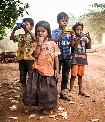 J’atterris à Siem Reap avec une envie de shooter indicible, trois petits boîtiers Nikon S33 et un Polaroid logés dans mon sac photo. Quinze jours, c’est très court, et mon objectif est d’aller à la rencontre des kidz et de les inviter à composer avec la lumière au travers du partage et du jeu. J’ai sillonné à moto le sud du Laos et le nord est du Cambodge pendant deux semaines en faisant passer de main en main les appareils photos et en immortalisant quelques scènes sur Polaroid, afin de laisser une trace des moments partagés et d’avoir un petit souvenir à donner en retour. Les kidz ont kiffé, moi aussi !