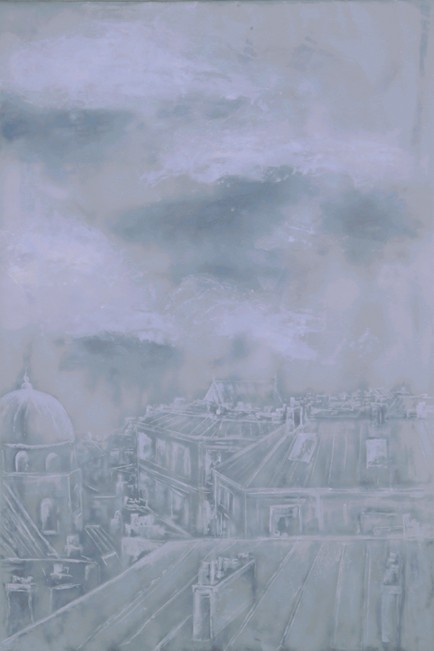 ŒUVRE PRÉSENTÉE : « Toîts » Fusain, craie et encre de chine blanche sur…