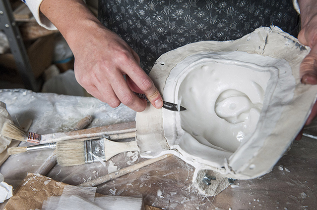 Cette installation est née de ma recherche créative autour des thèmes de mutation, de déformation du motif et d’hybridation. Une flore étrange envahit peu à peu la branche. Entre parasites et motifs floraux, les formes créées viennent se greffer au bois comme une nouvelle espèce végétal. A priori, choc de matières entre naturel et artificiel, les branches, parées de ses ornements, donnent naissance aux « Arborescences », sculptures hybrides.