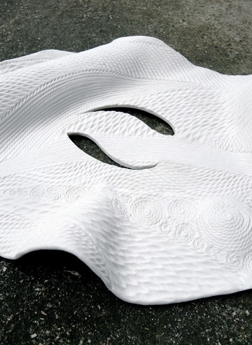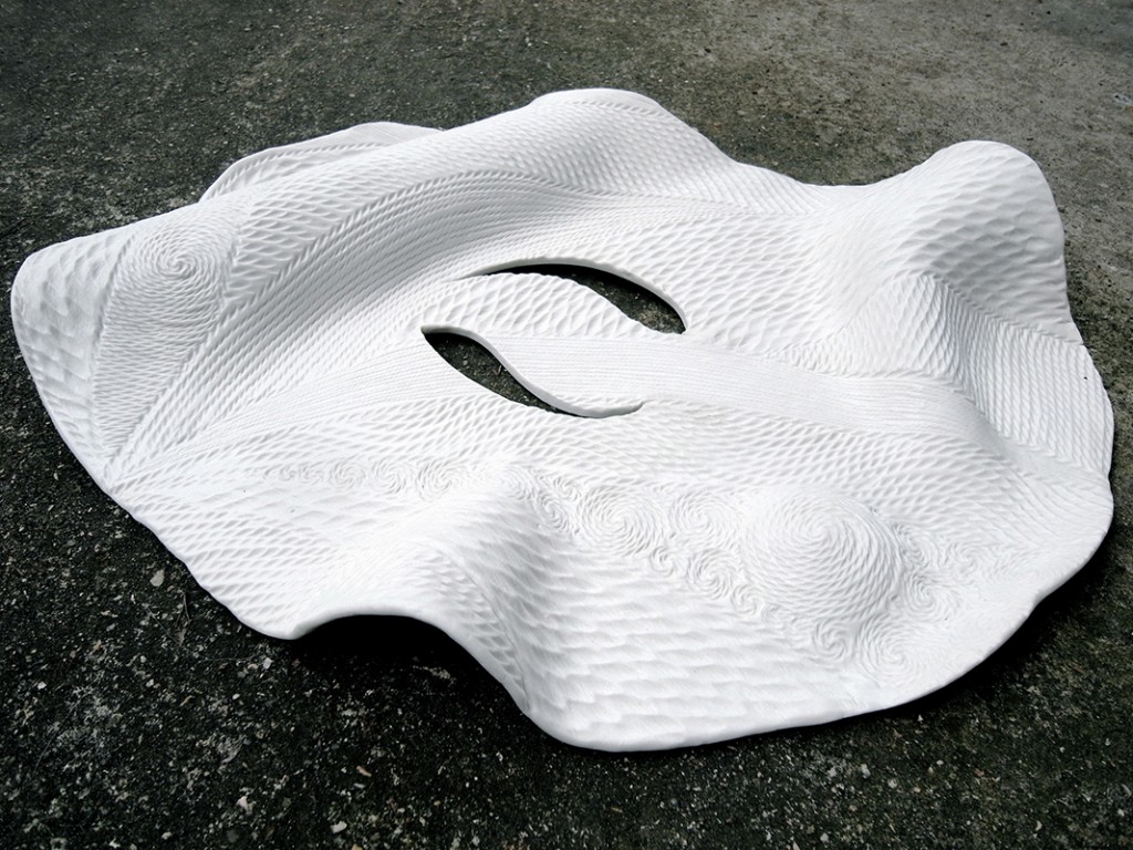 A l’époque de Jômon on utilisait une terre cuite (en marron ou en noir) mais je préfère contraster avec la porcelaine pour qui est translucide et blanc satiné pour obtenir un style nouveau et moderne.