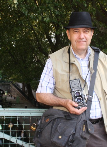 Historien et parisien de naissance il a vu évoluer sa ville. Il a jugé qu’un de nos rôles était de laisser un témoignage du Paris que nous connaissons par la photographie de la vie quotidienne des rues de Paris. Pour cela il utilise toujours la photographie argentique et son bon vieux Rolleiflex. En navigant dans les rues de Paris il essaye de saisir leurs atmosphères.