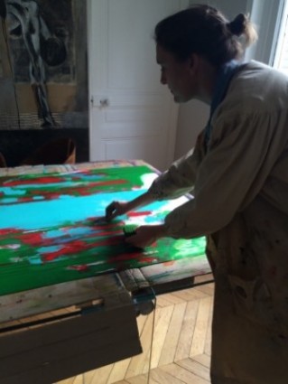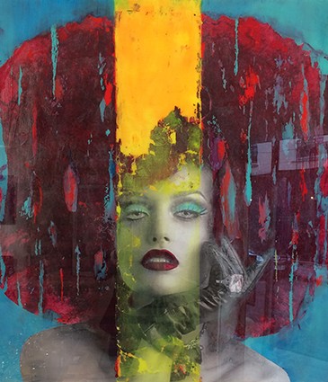 Ce portrait est composé par couches successives de collages, peintures et grattages sur plexiglas, en créant grâce à la transparence du support des couleurs éclatantes et des volumes subtiles entre premier et arrières plans ; il dépeint la beauté d’une femme mystérieuse, contrastée et percutante, où l’on retrouve la douceur inhérente à la féminité mais inscrite dans une énergie qui interpelle.