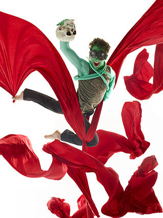 « DEEP’ tissu… coursier, comédien, cirquassien suspendu dans les airs tel un singe, étonnant d’agilité. Il saute sur son vélo pour aller déclamer du Shakespeare d’un bout à l’autre de Paris en 20 min !!! »