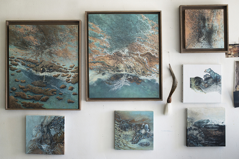 « Terre de Sienne, ocre. Ca me va d’être une terre. C’est le pigment que j’utilise le plus. »