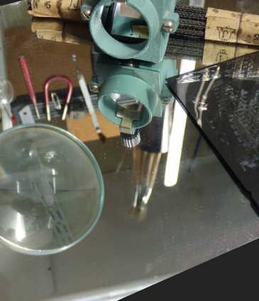 Illusion du Son réalisée par la projection d’une ombre qui image une portée musicale. Les notes de musique s’improvisent et se déplacent selon l’inspiration du moment grâce à des aimants .