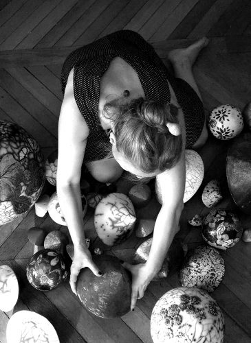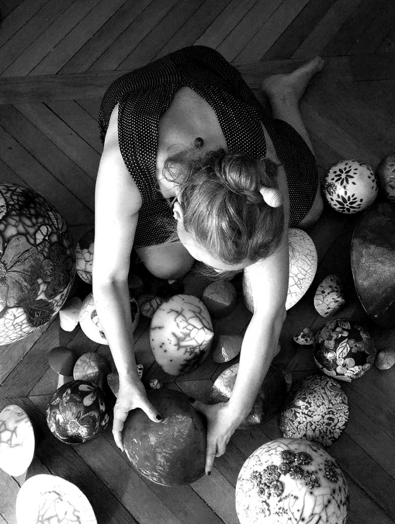 Enfumage et émaille, terre noire et terre blanche chamotée