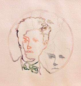 « Le dessin représente un grand cube que l’on peut deviner avec le mouvement des personnages à travers d’un jeu graphique avec les noirs, les blancs et le gris. Les personnages deviennent des silhouettes et des ombres, comme figés dans la glace. »