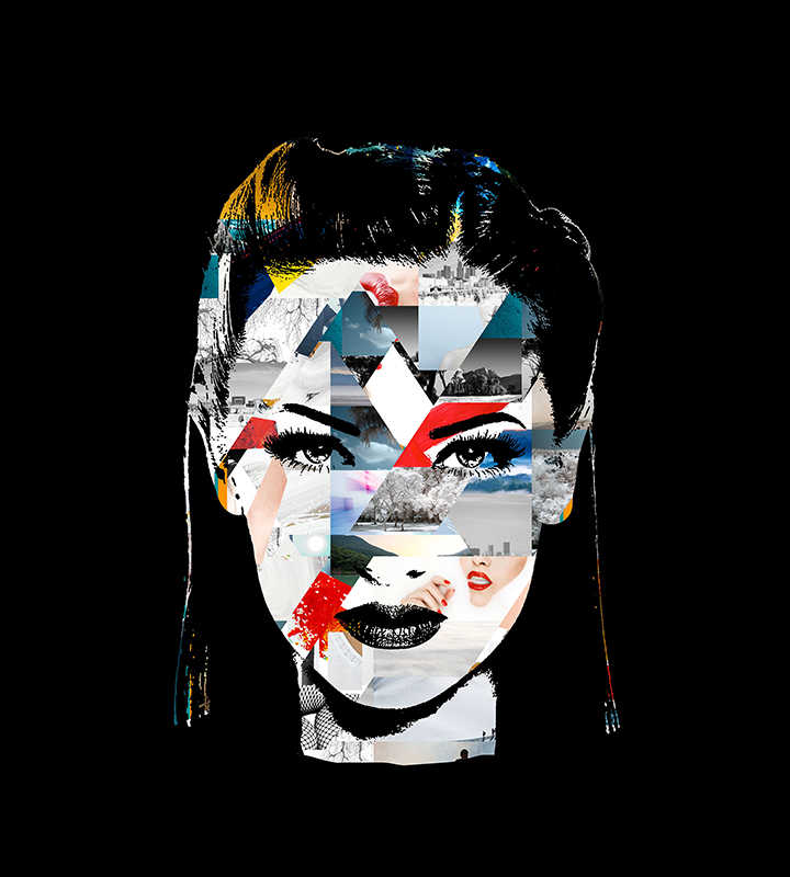 En utilisant le matériau photographique, je réalise le portrait de personnages existants ou fictifs ; dans ce portrait, j’ai souhaité allier détermination, force de caractère et féminité.