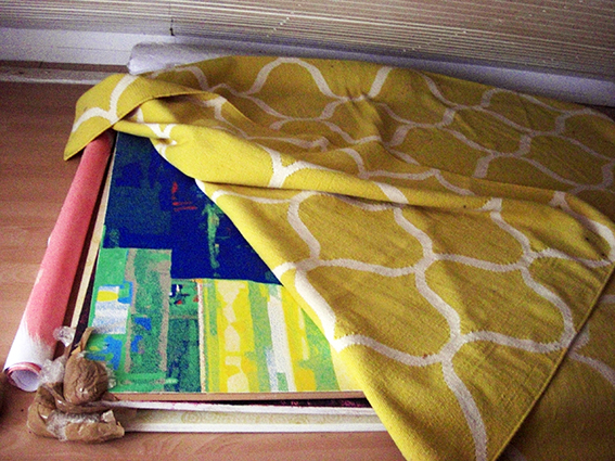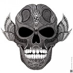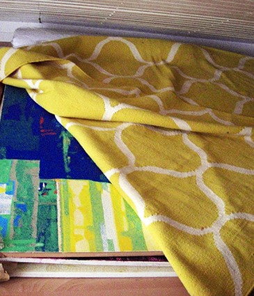Description: Création en 6 couleurs de poska sur enduit gesso, d’un portrait transformé sur ordinateur.