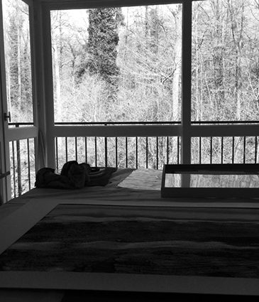 Mon imaginaire paysager se construit à partir de fragments de travaux de monotypes et de peinture.