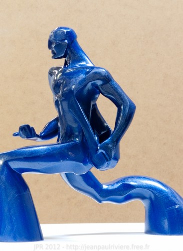 Sculpture débutée en 2007, puis tour à tour délaissée et reprise, sans cesse retouchée, modifiée, corrigée… Jusqu’à ce tirage aluminium réalisé en novembre 2012, peint à la manière d’une carrosserie.