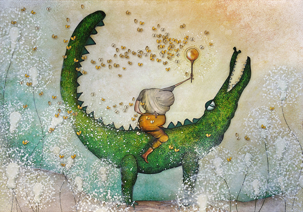J’avais envie de féérie pour mon visuel de carte de vœux de cette nouvelle année et faire une peintures qui représenterait un monde plus onirique qu’à l’habitude. Je voulais représenter une reine, il me fallait trouver une idée. Les gens qui l’on reçu on aimé, j’ai alors décidé dans faire une série, c’est donc dans cet esprit que j’ai réalisé cette seconde toile qui représente la reine du Printemps.