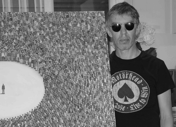 Il était une fois un jeune homme qui s’ennuyait dans son travail de cadre-école-de-commerce et jouait de la basse dans des groupes de rock. Un jour de 1995, sans trop savoir pourquoi, il acheta des tubes de gouache. Trois ans plus tard il abandonnait définitivement la musique, prenait un emploi alimentaire et se lançait à corps perdu dans la peinture.
