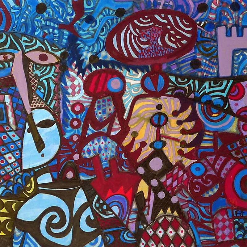 former un style tout à fait nouveau : l’art symbolique spirituel, dont fait partie son tableau « My Left Hand. »