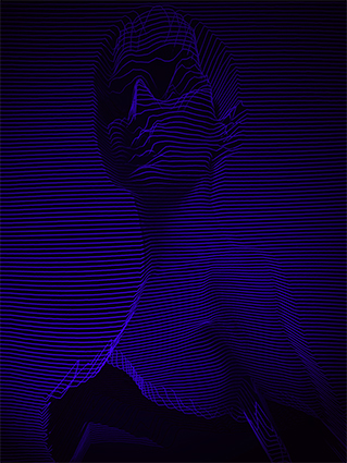BD#5 fait partie d’une série qui montre le concept illusoire et éphémère de la beauté à travers une distorsion numérique. Basée sur un processus d’auto-dégénération paramétrée, l’idée de ce travail est de remettre en question la domination de la perfection produite grâce aux différentes avancées technologiques qui changent nos perceptions de la réalité. Selon l’intensité et la couleur de l’éclairage choisi, l’œuvre change d’apparence, de visible à invisible.