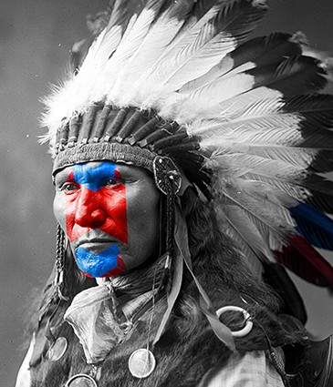 a été réalisé en 2015 à partir d’une photographie de Louie, fils du célèbre Sioux, Sitting bull, prise par David Frances Barry à la fin du 19ème siècle.