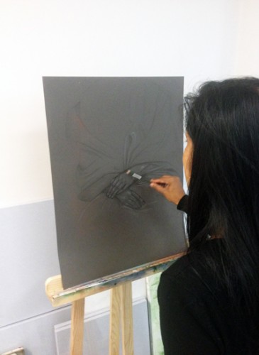 Même si la peinture à l’huile reste sa technique de prédilection, elle a étudié tous les médiums