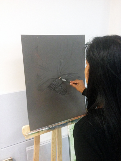 en dessin, peinture mais aussi multimédia, pour donner plus de liberté à son champ de créativité. Voguant entre réalisme et fantastique, elle cherche à travers ses créations à exprimer la beauté, mais aussi la fragilité et la complexité de l’âme humaine…