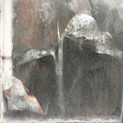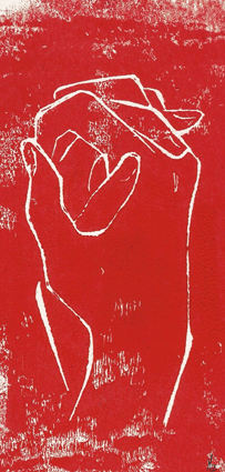 Linogravure sur papier de riz tenue entre deux plaques de plexiglass