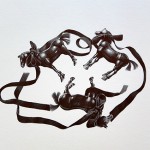 Entre peinture et dessin, j’explore la question de nos origines, intrinsèquement organiques et mystérieuses, la mémoire des lieux, du corps, dont l’animalité originelle dialogue souvent avec l’étrange ou le monstrueux, analogie de l’évolution, d’une métamorphose. Dans l’impermanence des êtres, de leur environnement et de la lumière, réside cette étrangeté de l’ « entre-deux », les traces