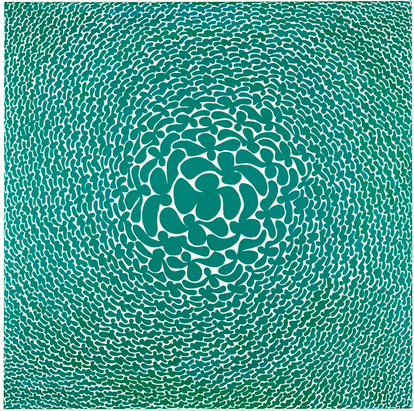 Pourtant il ne s’agit pas d’onde mais d’ondes. Marie Piselli met le vert en modulation de fréquence. Cette succession, ce tourbillon, n’est constitué que de trèfles et pas des moindres, la rareté personnalisée : le quadrifolium.
