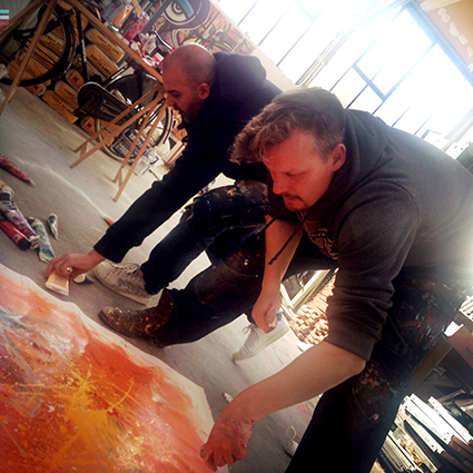 Faceoff est une peinture réalisée à 4 mains illustrant la dualité et la complexité de l’être humain, montrant ses différentes facettes