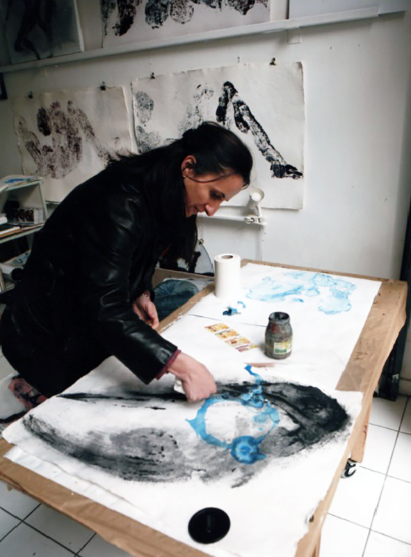 » Les mouvements des corps sont moteur de recherche pour mes dessins et peintures ; Ainsi « chrysalide » démontre avec un dynamise la tension et la mue d’un corps (ici en forme humaine) juste avant sont envol. Ceci correspond à ma recherche sur l’évolution et transformation permanente de notre monde. »