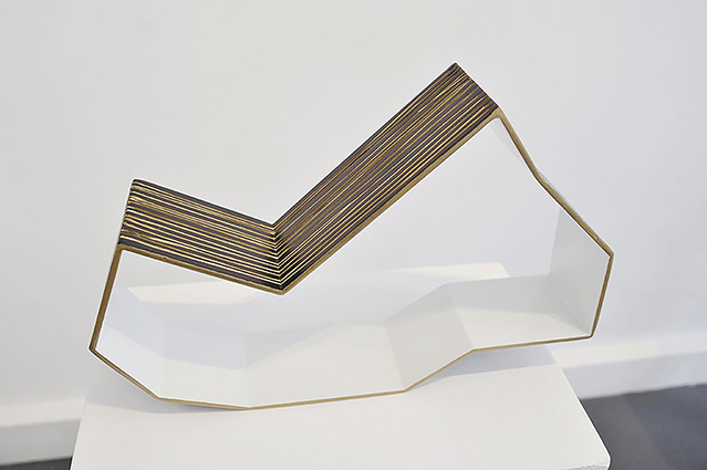 La contradiction suscitée par le titre interpelle. Peu à peu, l’acier brut se transforme sous la main pour le rendre léger, coloré, laissant parfois le doute sur l’origine du matériau qui s’estompe peu à peu. Sa forme fermée fini par tourner en rond, comme un élastique que l’on pourrait étirer entre les doigts.