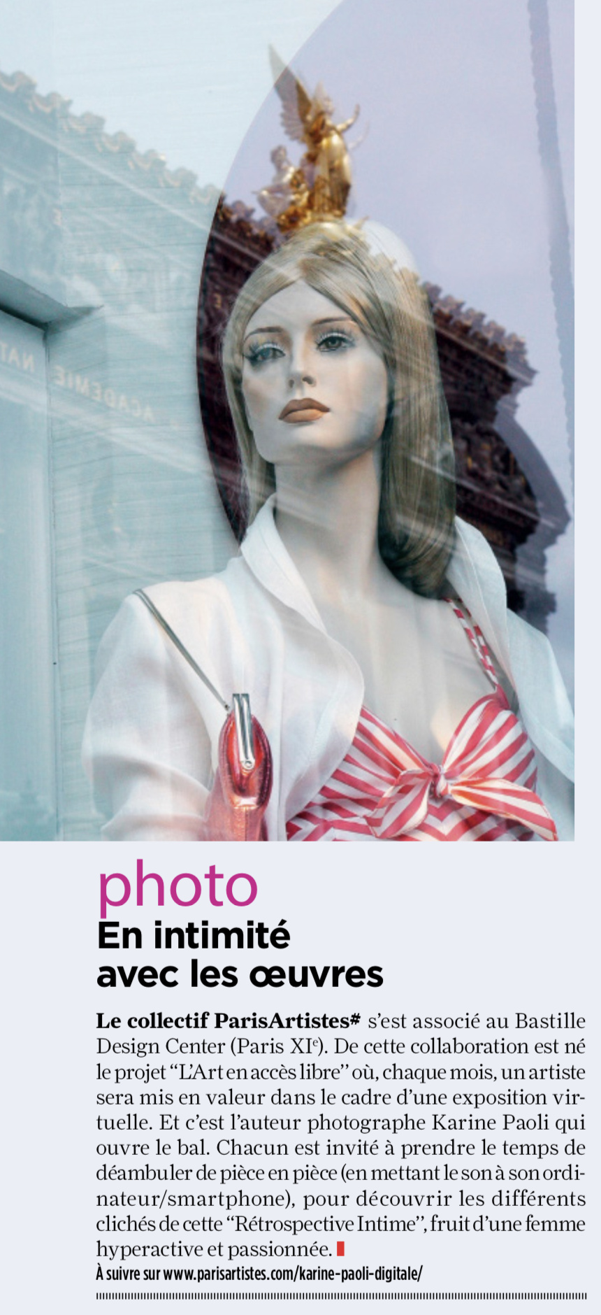 France Bleu Paris * 25 mars 2021 * interview de Karine Paoli sur PARISARTISTES # Digital et l’exposition de Marie Donnève – questions posées par Sophie Scarpula.