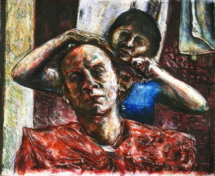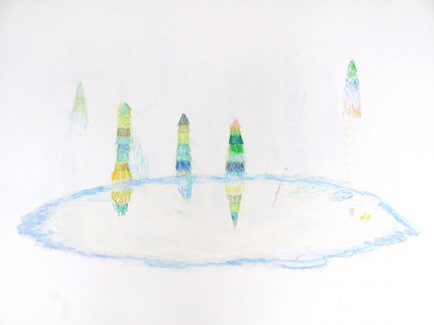 ŒUVRE PRÉSENTÉE : » Chez nous » Crayons de couleur, pastels à…