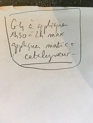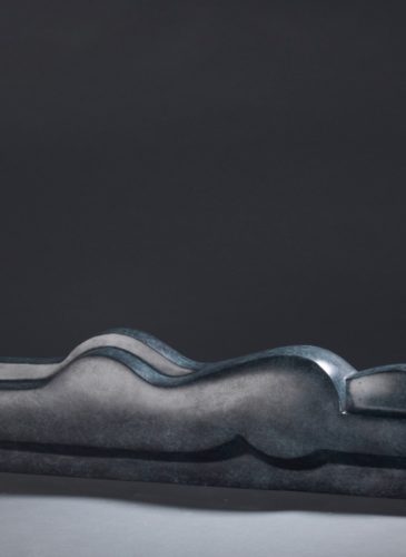 La patine « bleu de gris » de l’œuvre accentue sa minéralité et cherche à réinterpréter la facture classique du vert de gris. L’œuvre est le résultat d’un travail de plus de 6 mois : sculpture et finition du plâtre, moulage, travail de la cire, fonte, ciselure et patine en collaboration avec la Fonderie Paumelle.