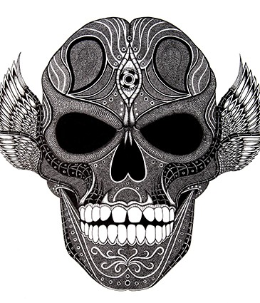 « SKULL ON ME » est une œuvre réalisée dans la continuité d’une série de dessins en noir et blanc réalisée entre 2014 et 2016 comportant plus d’une centaine d’œuvres au format A4. Libre à chacun d’interpréter et de mener sa propre réflexion face à l’œuvre.