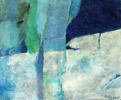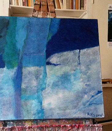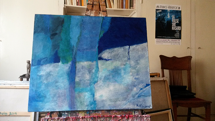 » Trois travers, qui ne sont pas des tares j’espère, semblent avoir téléguidé mon inclination pour la peinture ! Le défi, que je me fais à moi- même, de ne pas me cantonner à la seule écriture dramatique (auteur de théâtre étant mon métier) : la certitude orgueilleuse (des contempteurs auront le droit de dire vaniteuse) d’avoir quelque chose à exprimer ; l’acharnement à vouloir apprendre tout par moi-même, perdant sans doute un temps précieux à chercher ce qui est avéré, comme si, vierge de toute influence, je réinventais une manière singulière. Illusion mégalomaniaque assurément. J’ai regardé avec tant de ferveur la peinture de Nicolas de Staël que j’ai sécrété un blocage. Sans doute cette vénération a occulté mon souhait de montrer mes toiles. L’humilité et la discrétion sont des cousines germaines ! L’âge aidant, je renonce à la pudeur, sans pour autant éliminer l’inquiétude qui est bel et bien un ressort de la créativité… »