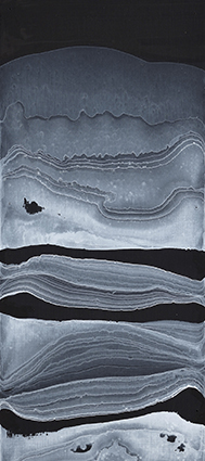 Il s’agit pourtant d’une expérimentation avec de la peinture acrylique très diluée, du vent, de la chaleur et de la gravité et non d’une simple illustration de relations scientifiques.